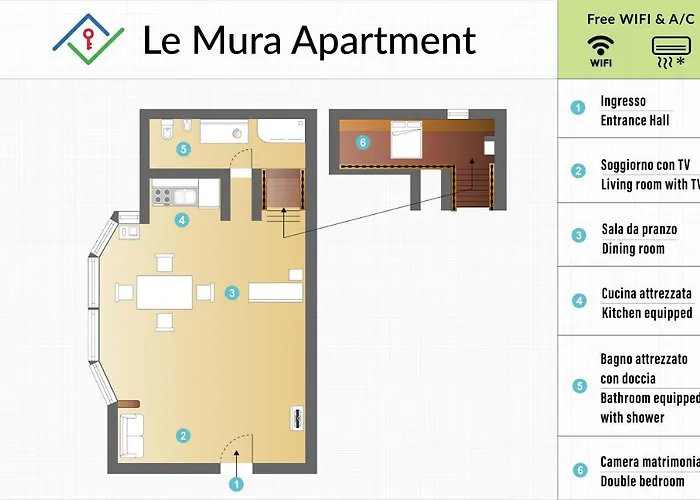 Situato a una distanza di 600 metri dalla Torre di Pisa, Le Mura Apartment, di 50 m^2, si trova nel centro di Pisa. L'appartamento offre agli ospiti una vista sul cortile interno e una bottega del barbiere.
